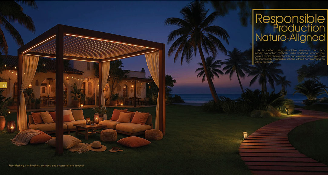 Engineered for the Perfect Shade Crafted from high-quality aluminum, each design embodies strength, style, and lasting comfort. Driven by a passion for innovation, we create smart and elegant solutions for gardens, balconies, and terraces.